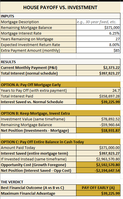 This week, I chose to keep the mortgage because we're moving soon. You might choose differently. That's the point—run your own numbers, trust your process, make your decision.
