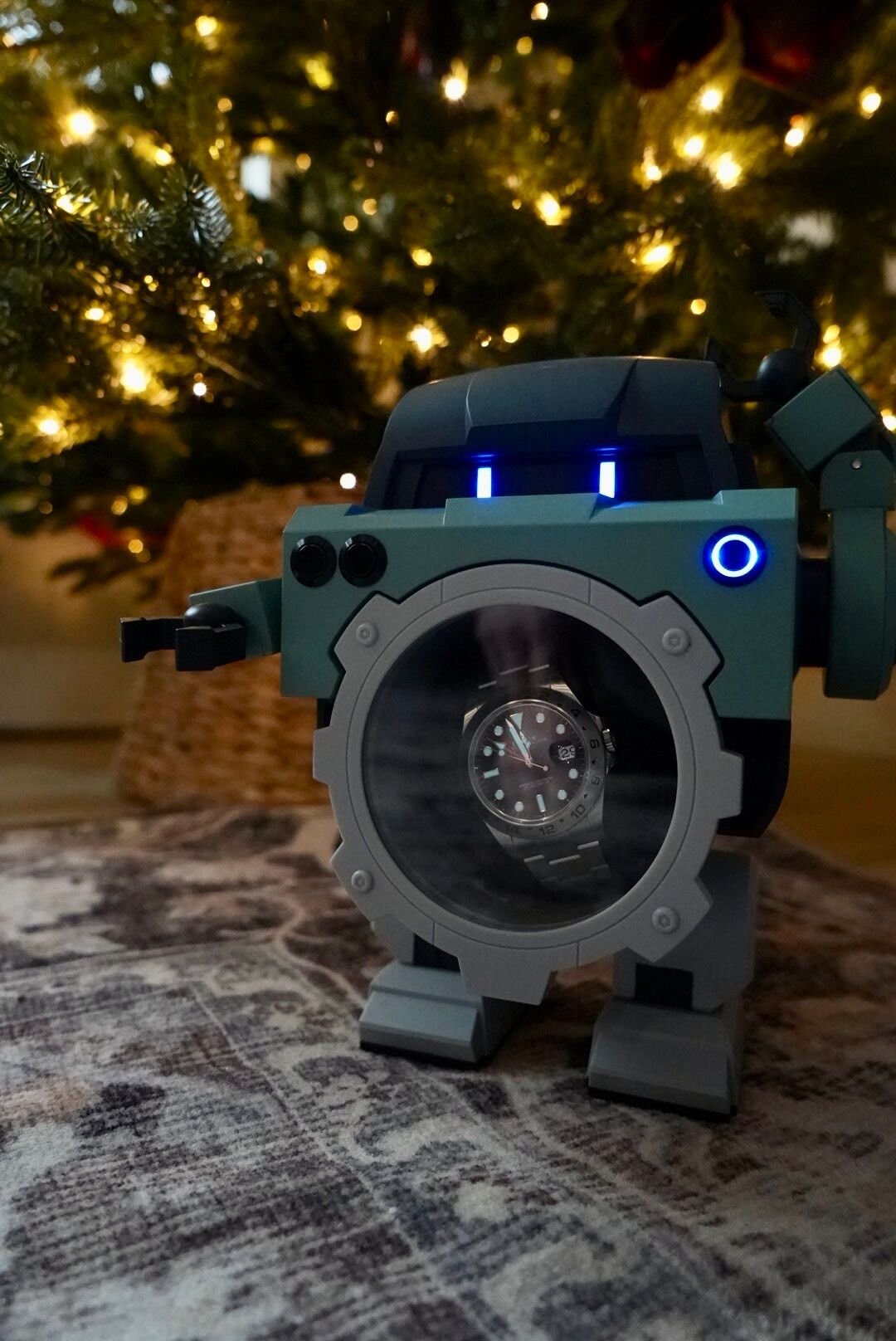 The first thing that struck me when unboxing the RW1 was its size. This watch winder is significantly larger than the photos suggest, which actually works in its favor as a statement piece. The robot aesthetic is definitely a conversation starterโimagine a retro-futuristic robot where your automatic watch becomes its "brain." As a self-admitted nerd who may have watched too much Teenage Mutant Ninja Turtles growing up (yes, I'm channeling my inner Krang here), I absolutely love this design philosophy.